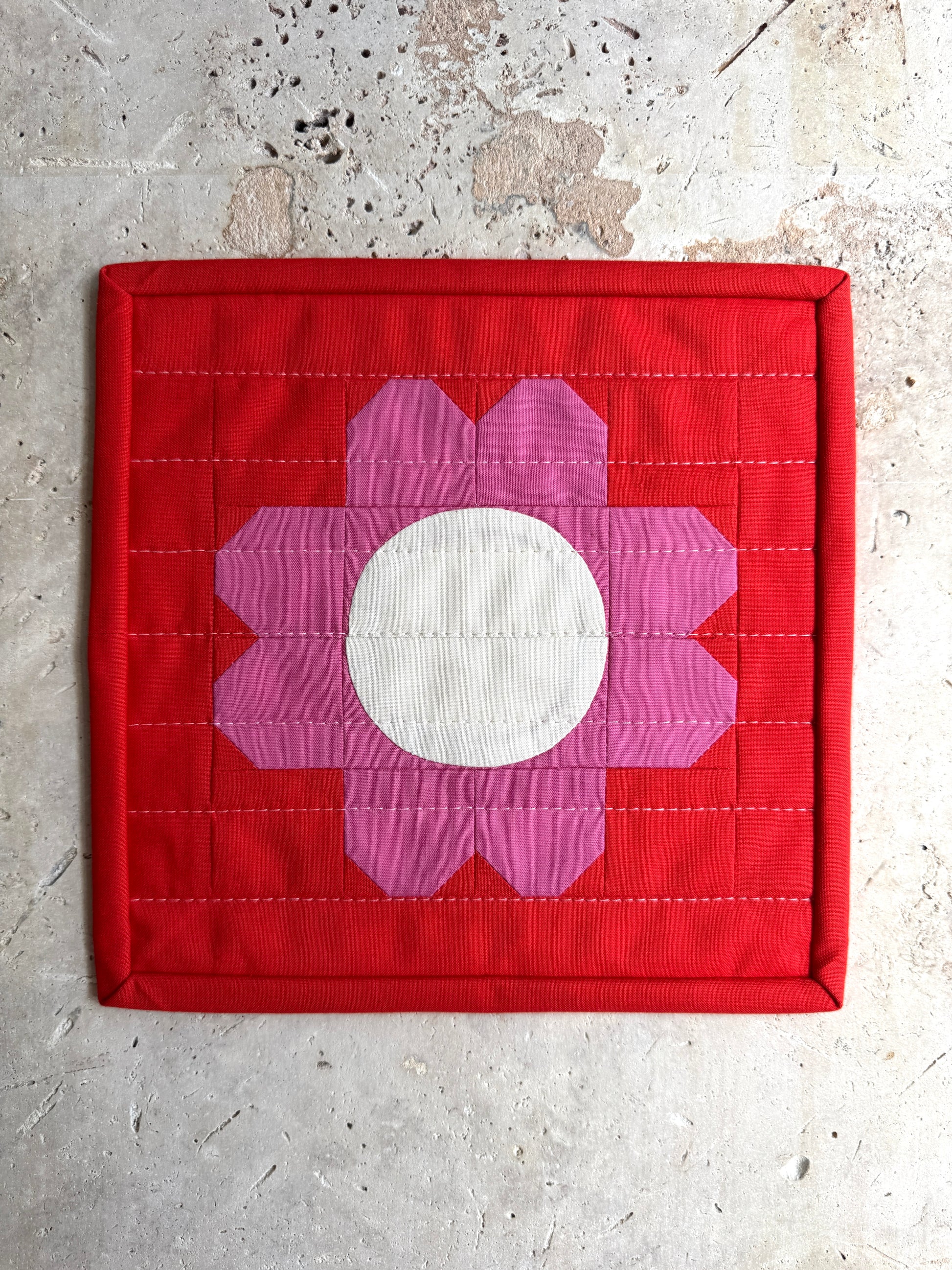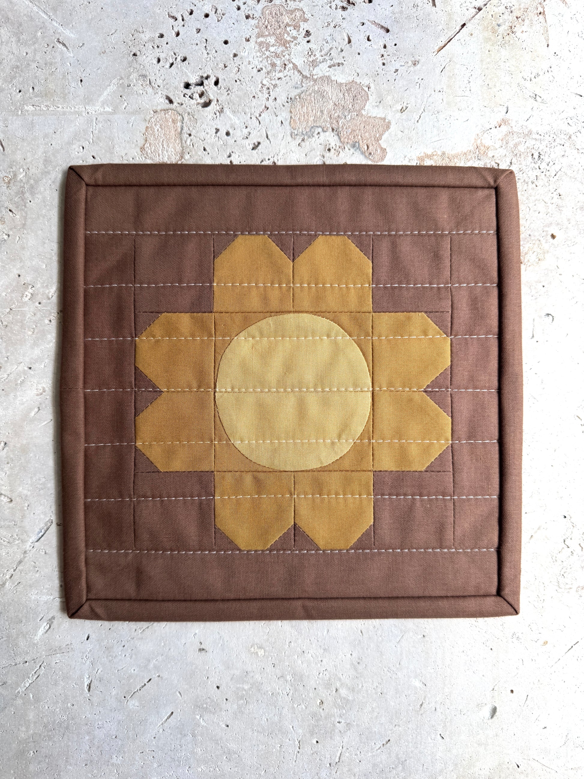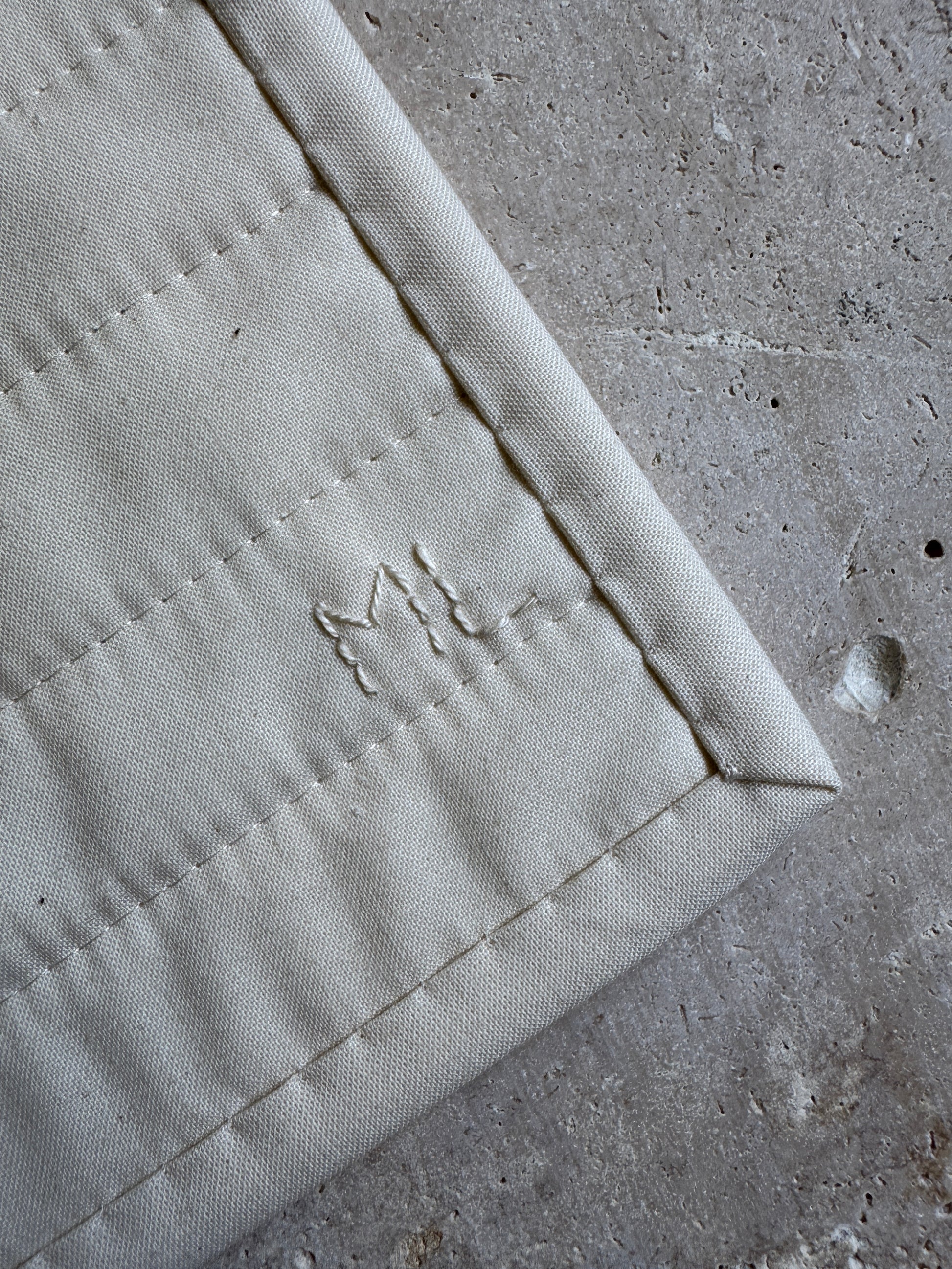 This handmade quilt is made to order in the minimal geometric pattern shown, with colours custom to your preference and typically aligned with the fabrics and tones used in my previous work.