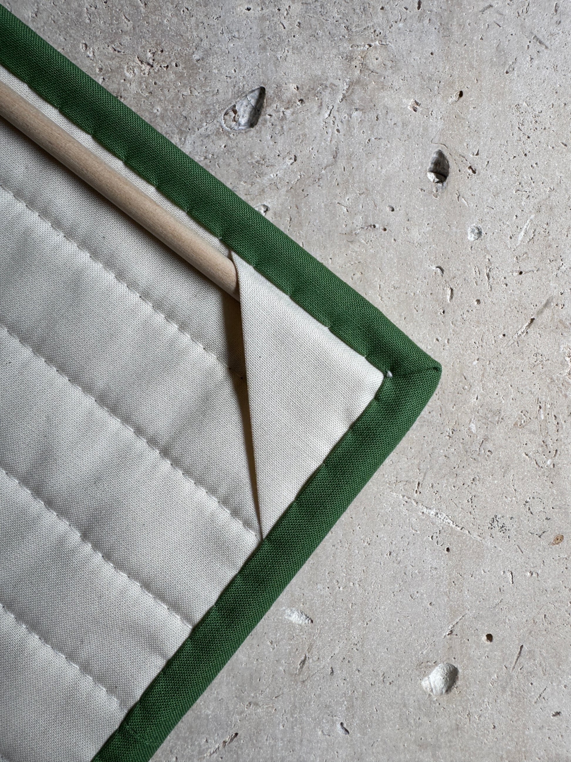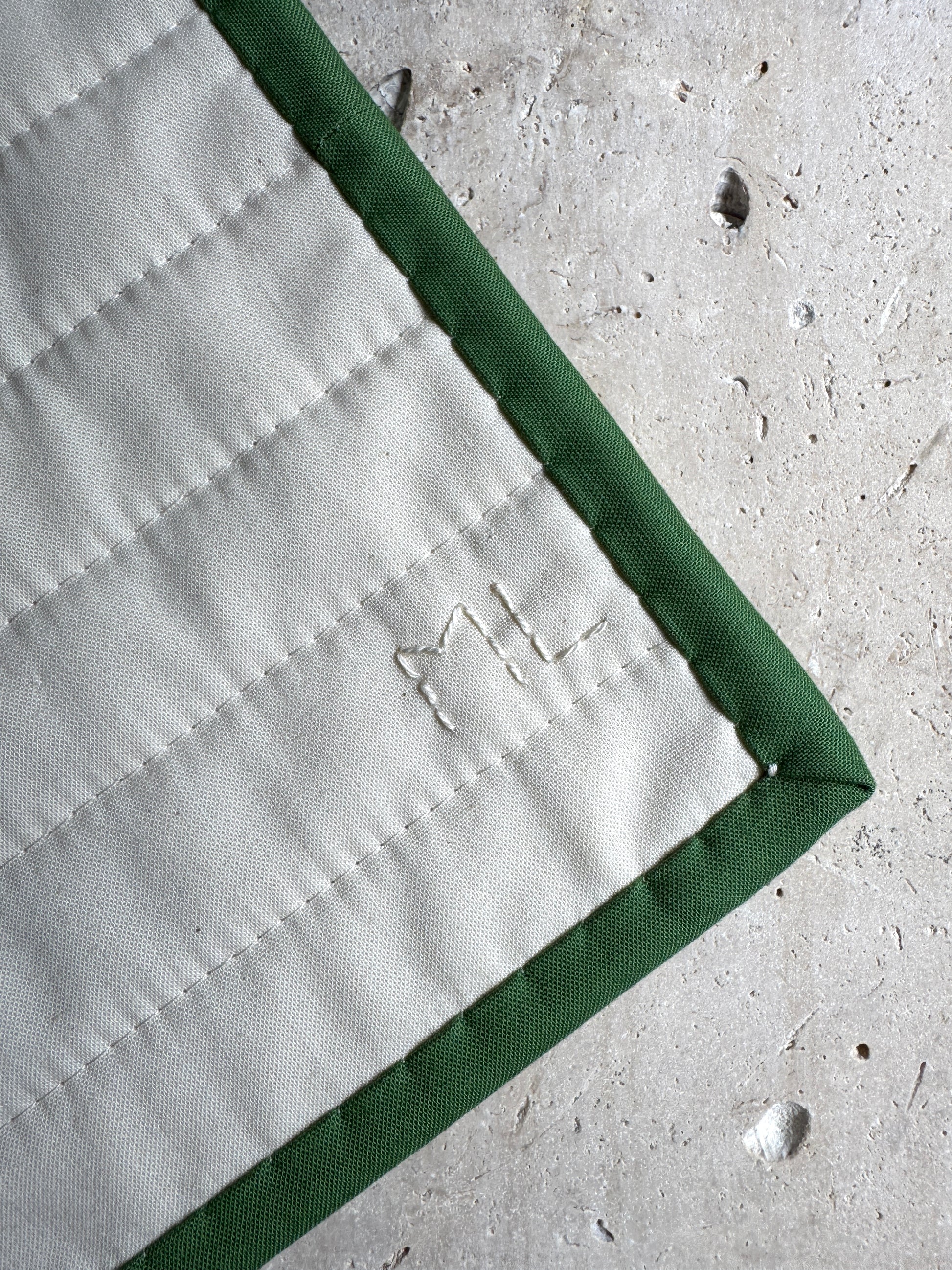 Handmade quilt in a minimal geometric pattern.