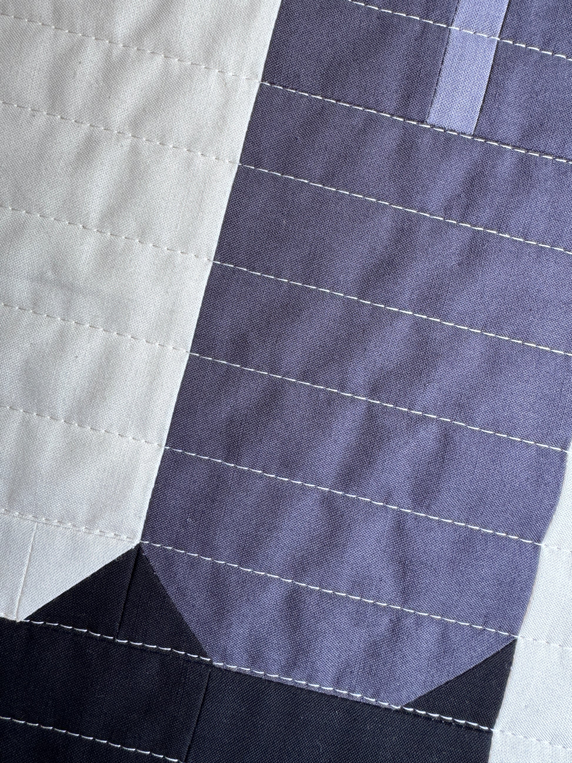 Handmade quilt in a minimal geometric pattern.
