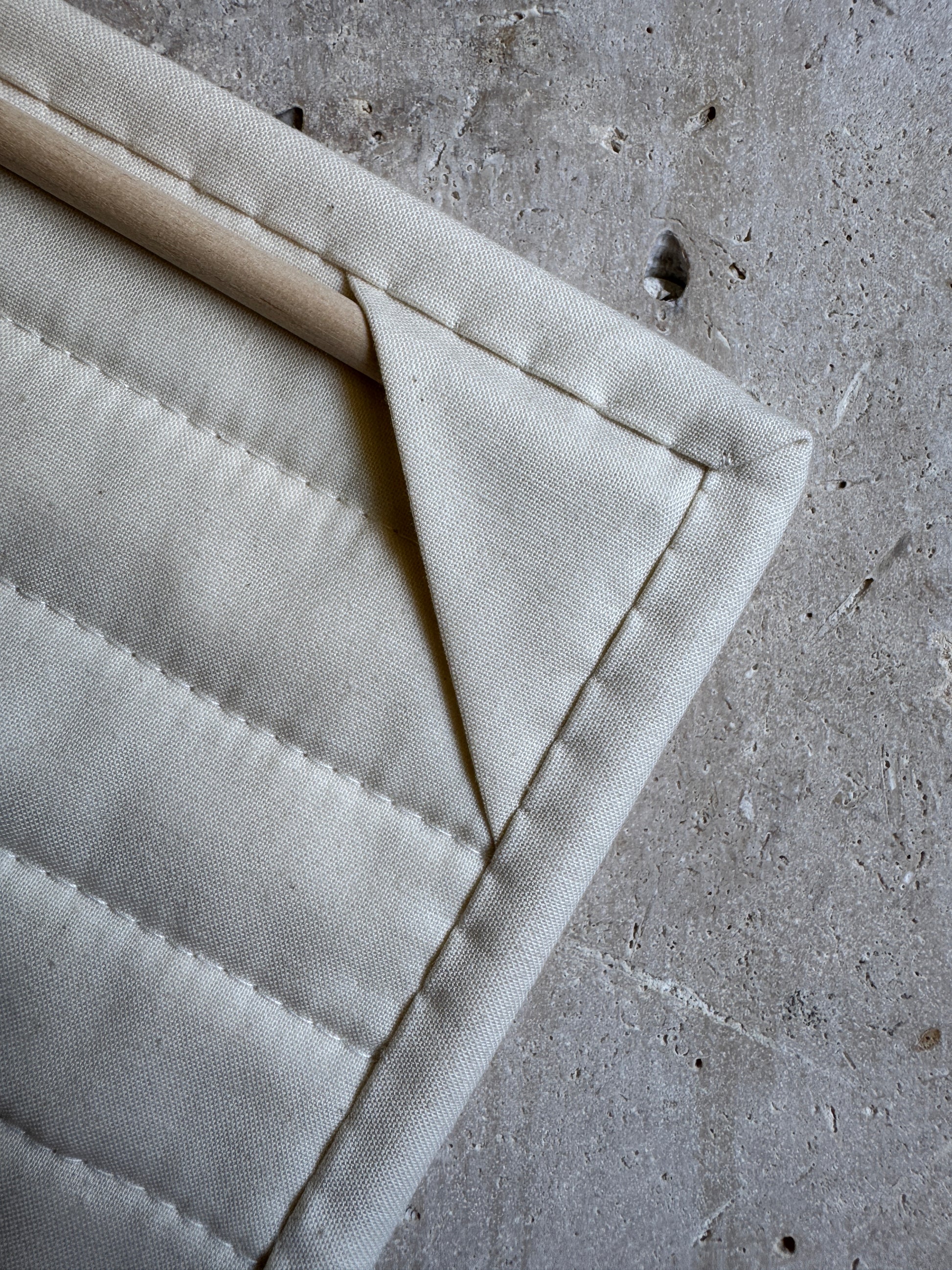 Display this medium work on a wall as it includes tabs and a dowel for easy hanging.