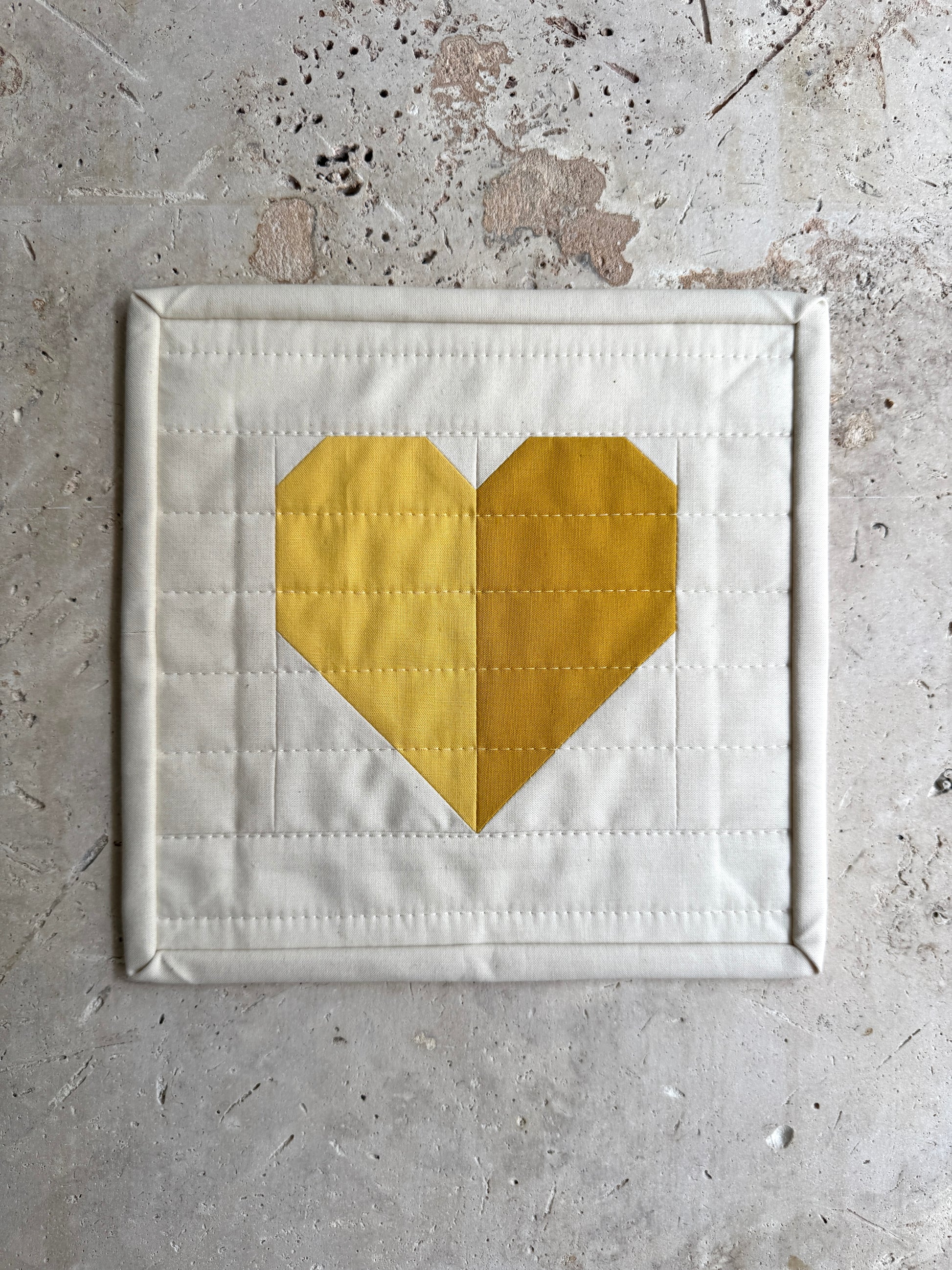 Handmade quilt in a minimal geometric pattern.