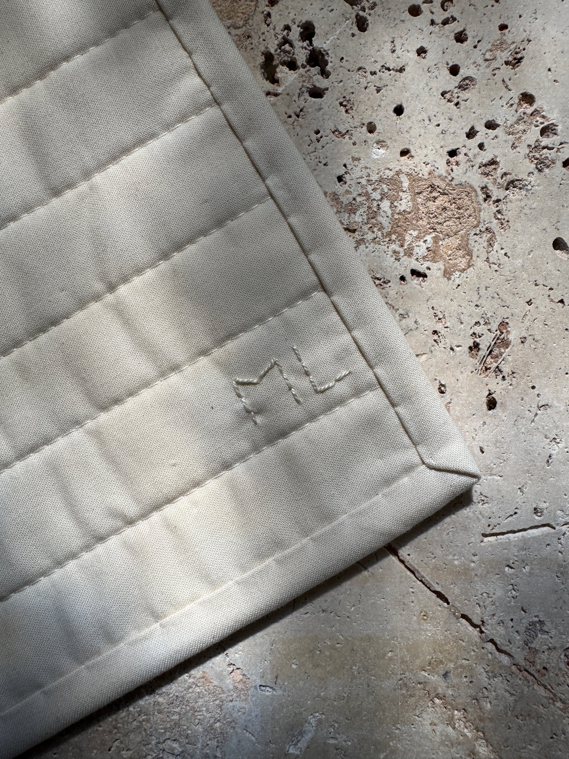 Handmade quilt in a minimal geometric pattern.